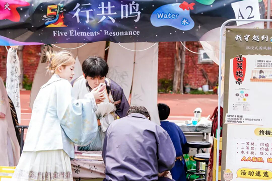 如何围绕“五行”概念设计方案并顺利在校园落地,这是一个从零到一的创造过程——没有现成模板可抄,所有概念、动线、内容都需要团队成员自己策划搭建。那段时间,她的工作清单排得满满当当:发起总概念、规划整体流程、筛选联系合作商、全面推动对外宣传。从谈合作被拒绝到反复调整方案说服对方,从协调团队成员分工到应对临近布展前的突发状况,她几乎把会展策划的每个环节都亲手摸了一遍。