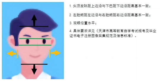 3.身份验证上传的证件照作为考生存档照片,将用于准考证打印及其他各项业务办理,须符合《天津市高等教育自学考试报考及毕业证书电子注册图像采集规范及信息标准》(附件1),不符合要求的照片将不能通过认证。