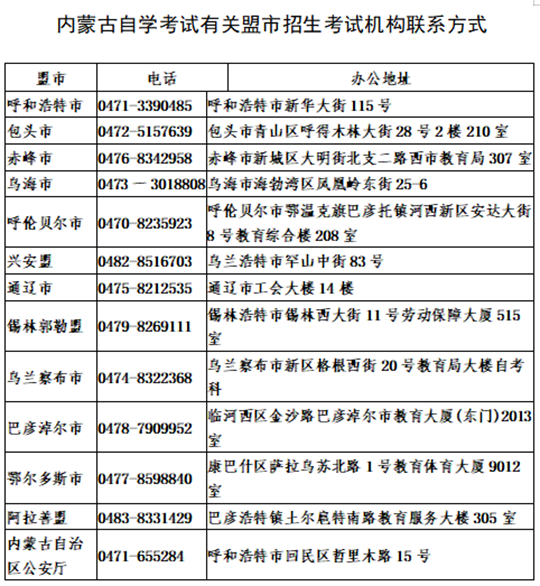 附件3:内蒙古自学考试有关盟市招生考试机构联系方式