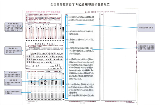 安徽省高等教育自学考试采用答题卡作答。考生注意在答题卡指定的横线上和书写方框内填写个人信息。每个书写方框只能填写一个阿拉伯数字。并保持答题卡卷面整洁,不能在非填涂区域乱写乱画。