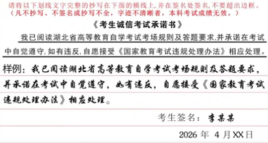 | 湖北省2026年4月高等教育自学考试考前温馨提示 |